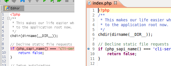 Note. You need to upgrade to the latest Zend Studio 11.0.1 Early Access build or wait for the official 11.0.1 release (due in a week) to take advantage of this hint. There was a bug in the PHP editor that prevented breakpoint highlighting in previous releases.